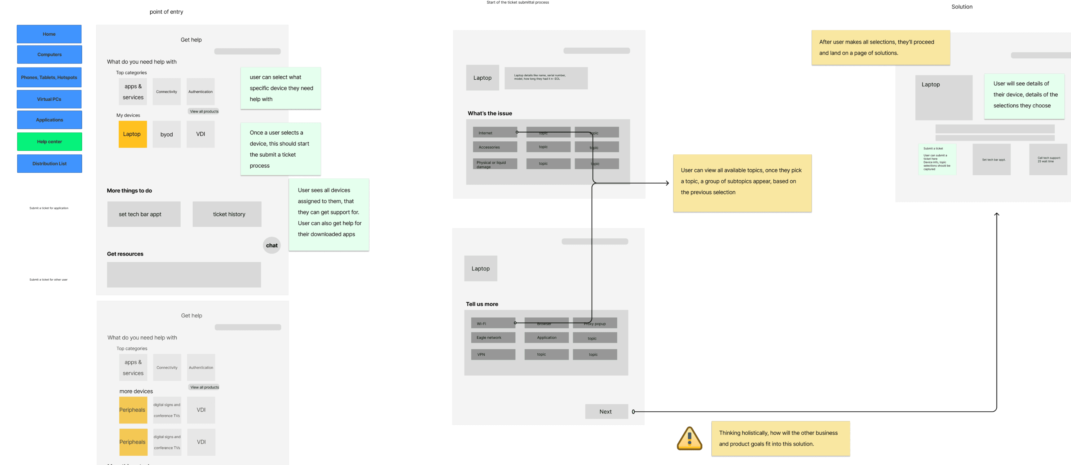 → Design Decision: Designed adaptive forms that show relevant fields based on user device type selected. If an associate selects "Mobile Phone" as their issue category, the form surfaces mobile-specific options instead of showing irrelevant desktop/laptop fields