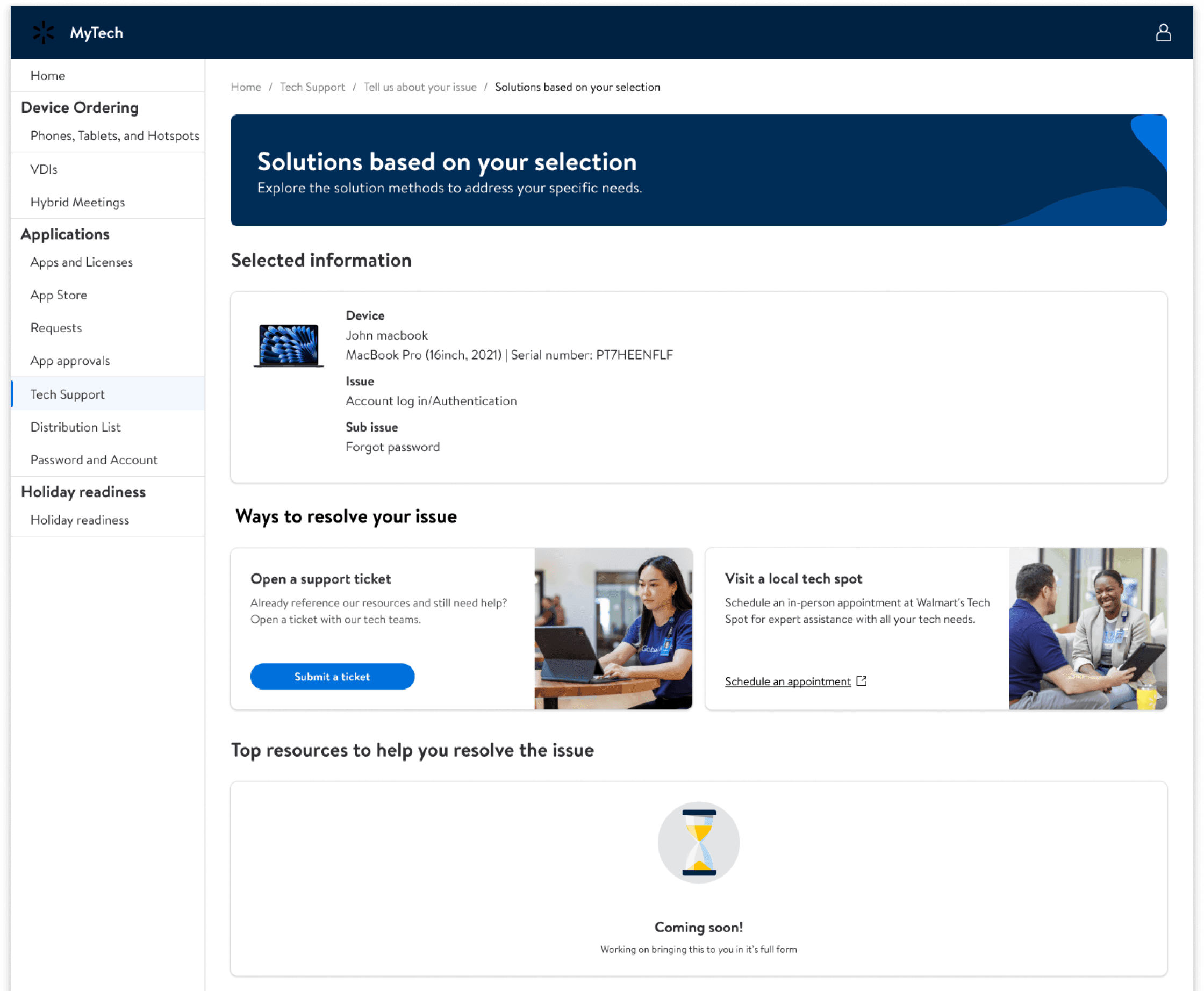 The existing tech support experience failed to serve the diverse needs of 850+ associates across Walmart’s Home Office, creating friction for users and IT support agents.